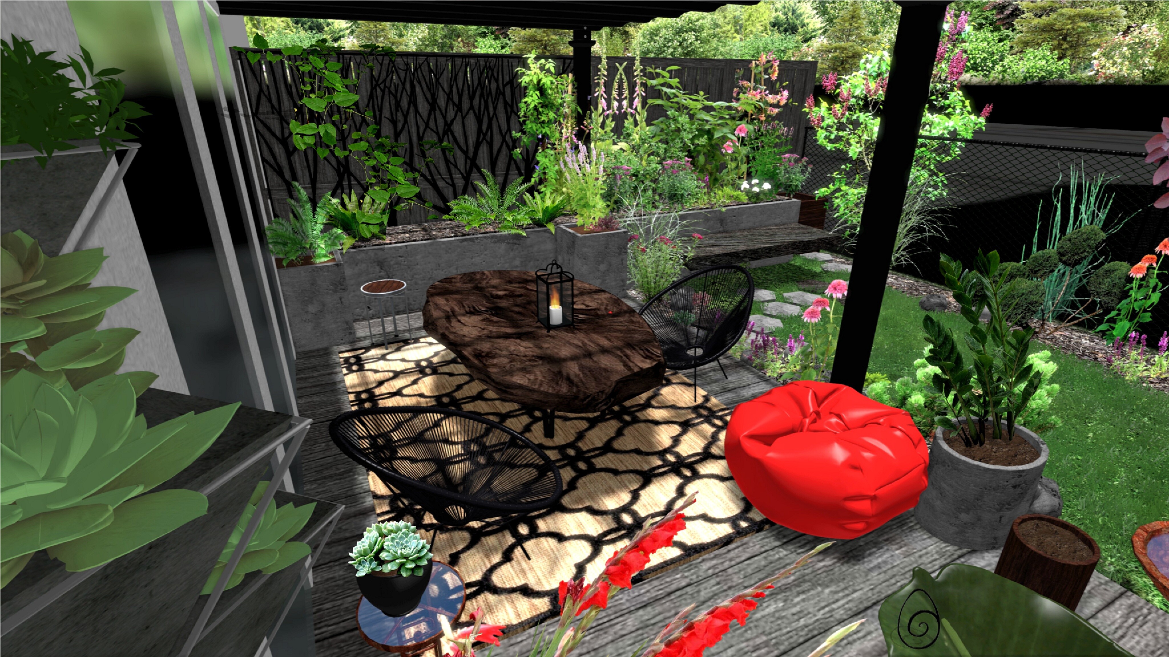 ergonomii. Proces zaczynam od rozmowy z Klientem i poznania jego potrzeb, potem wykonuję pomiary terenu, opisuję i mierzę istniejącą zieleń, oceniam/sprawdzam rodzaj i pH gleby, następnie tworzę wizję zagospodarowania - projektuję. Projekty wykonuję ręcznie lub w programie do projektowania ogrodów. Tworzę zarówno mapę - plan ogrodu, jak i wizualizację tego, jak docelowo będzie on wyglądał. Klient dostaje zazwyczaj dwie koncepcje zagospodarowania terenu i potem wspólnie tworzymy ostateczną wizję, z której powstaje kompleksowy projekt.